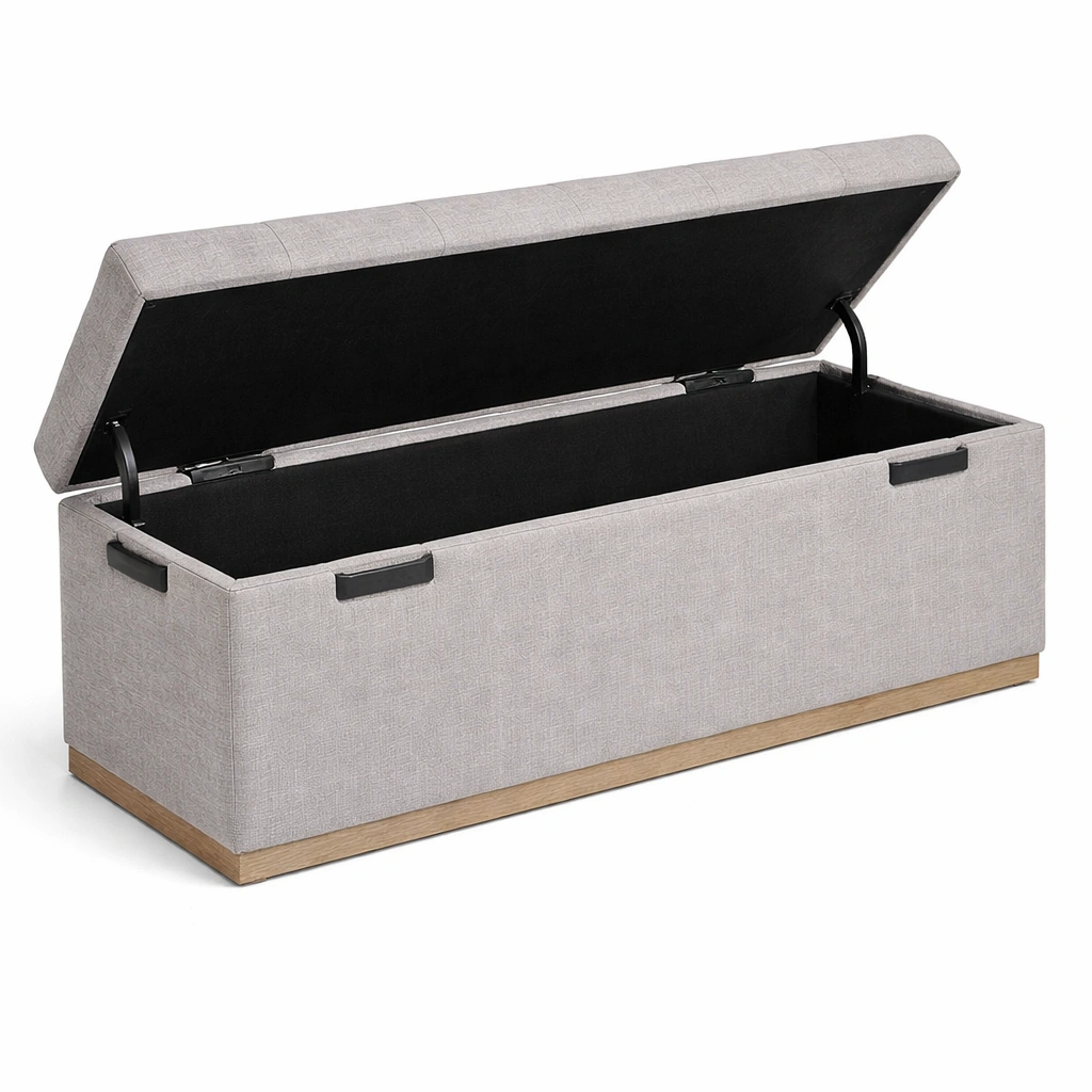Banco con almacenamiento tapizado en poliéster gris