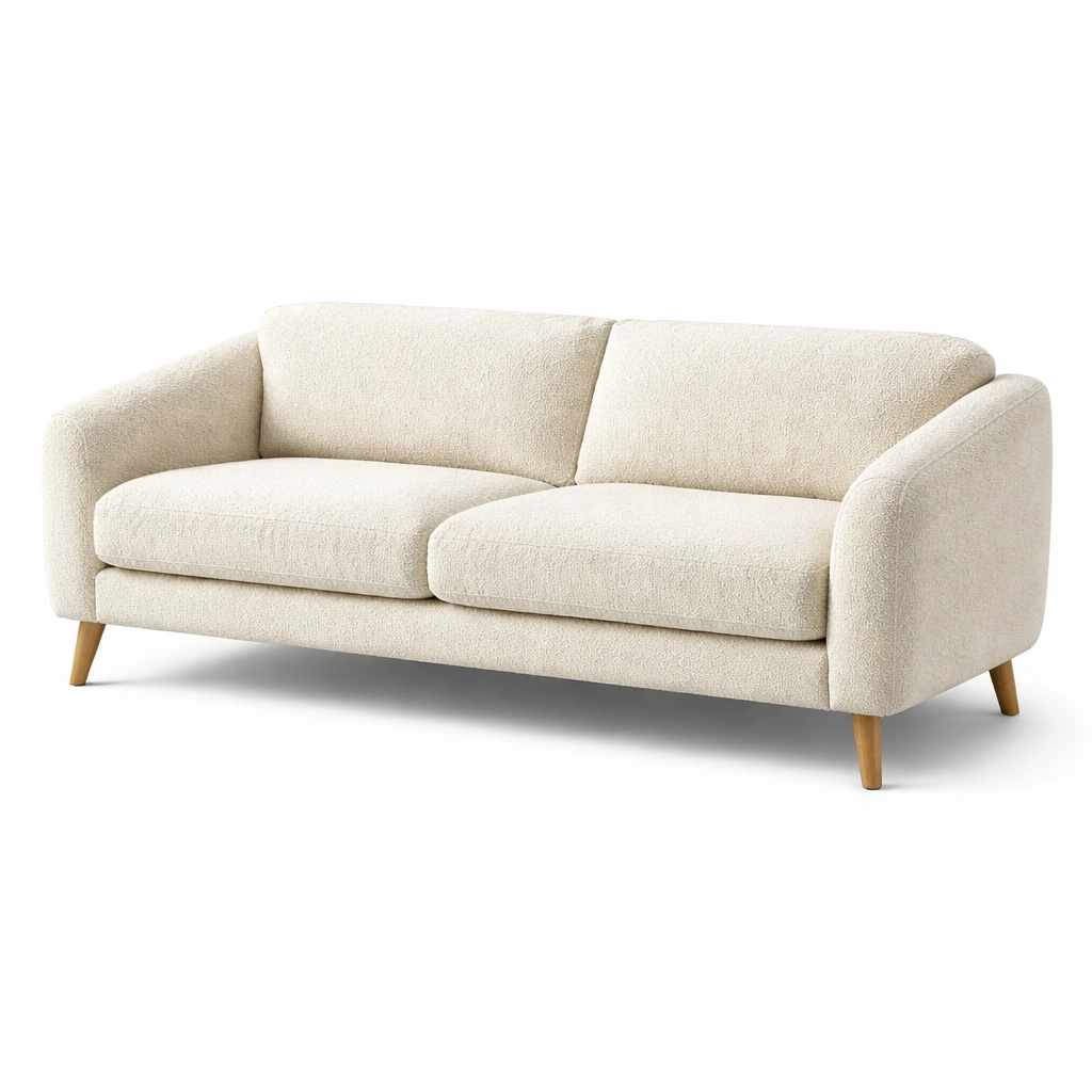 Sofá de tela beige de 2 plazas con estructura de madera maciza